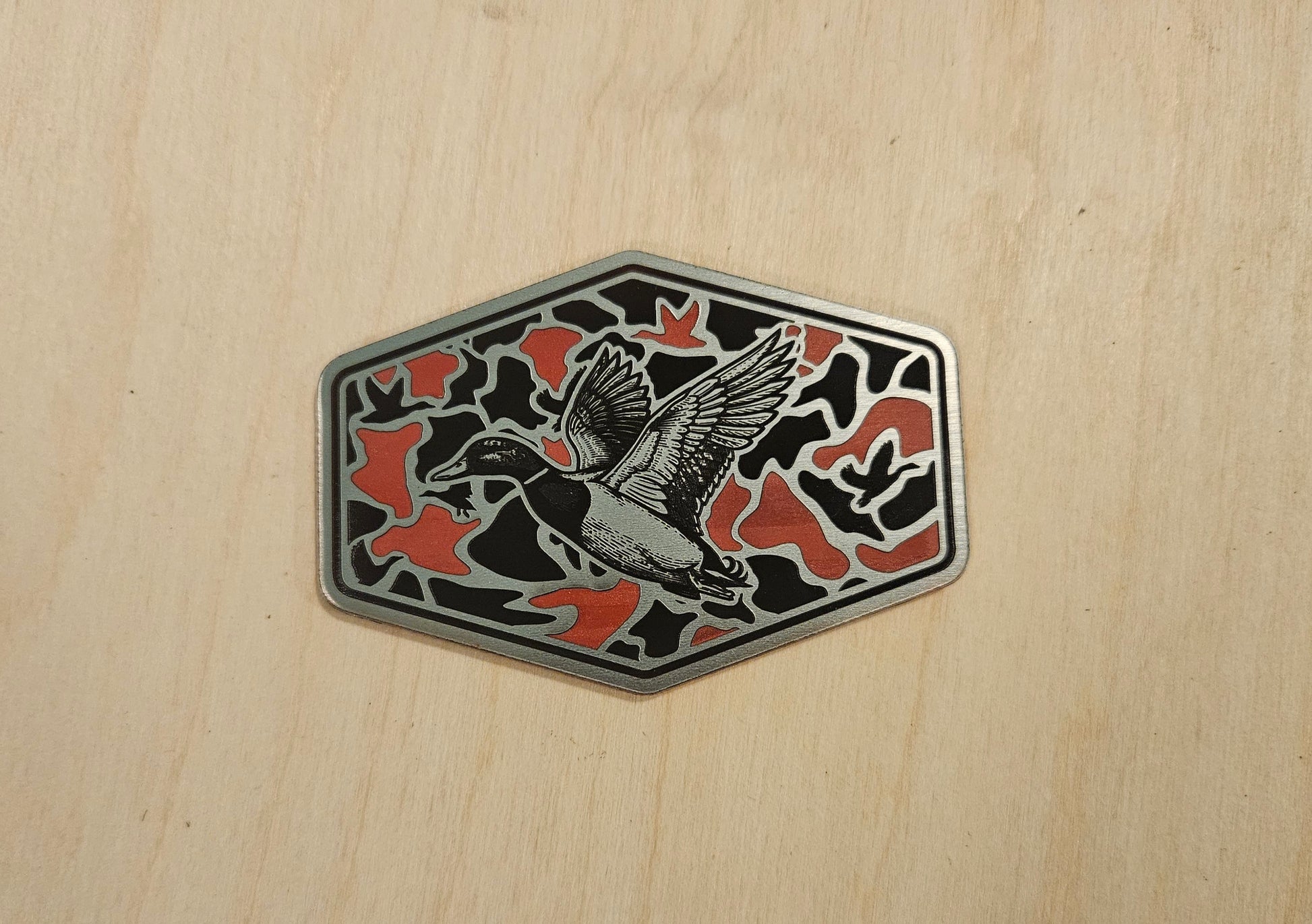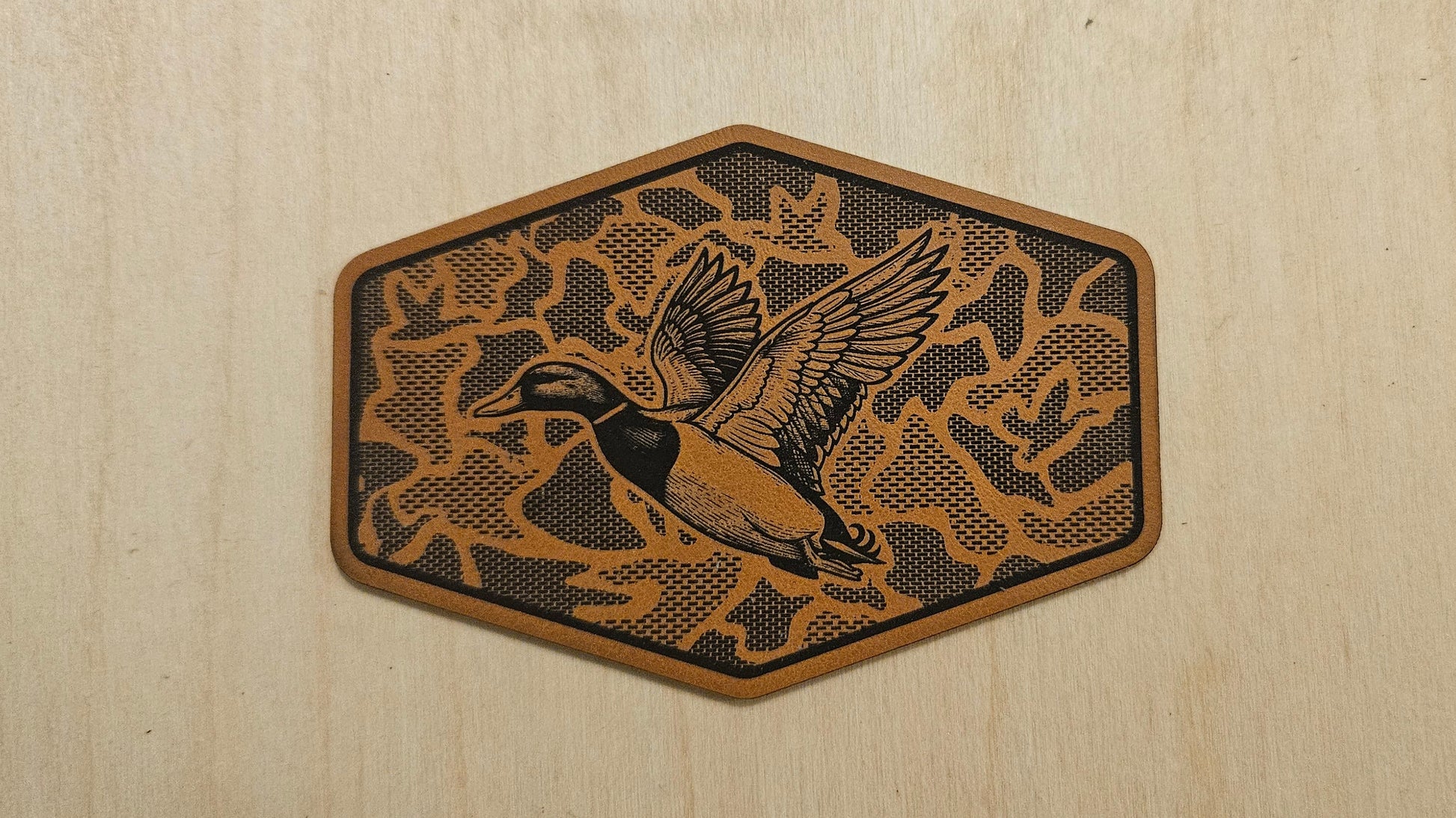This laser-ready duck SVG is designed specifically for creating hat patches. The bold lines and camo background engrave beautifully on leatherette or tri-layer acrylic, giving your patches a clean, detailed finish with strong contrast.